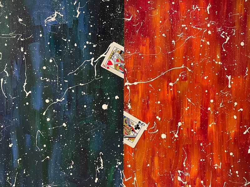 18 x 24 acrylic paint & cards on canvas