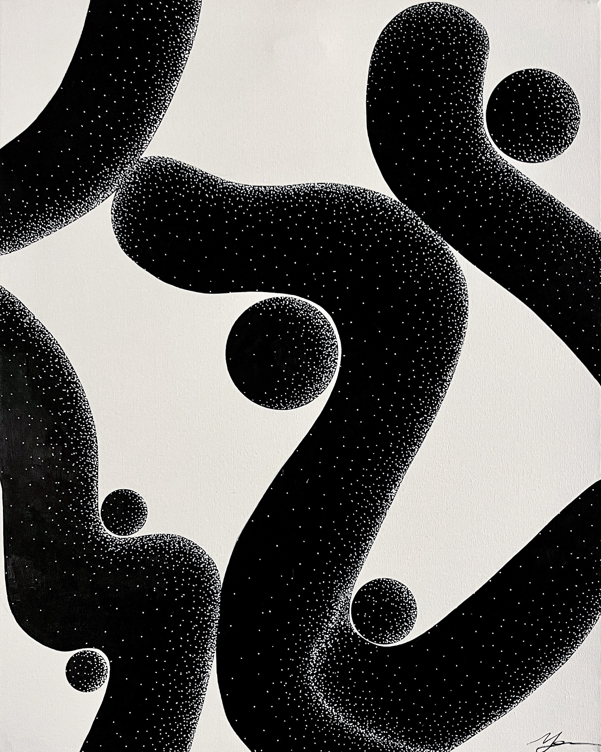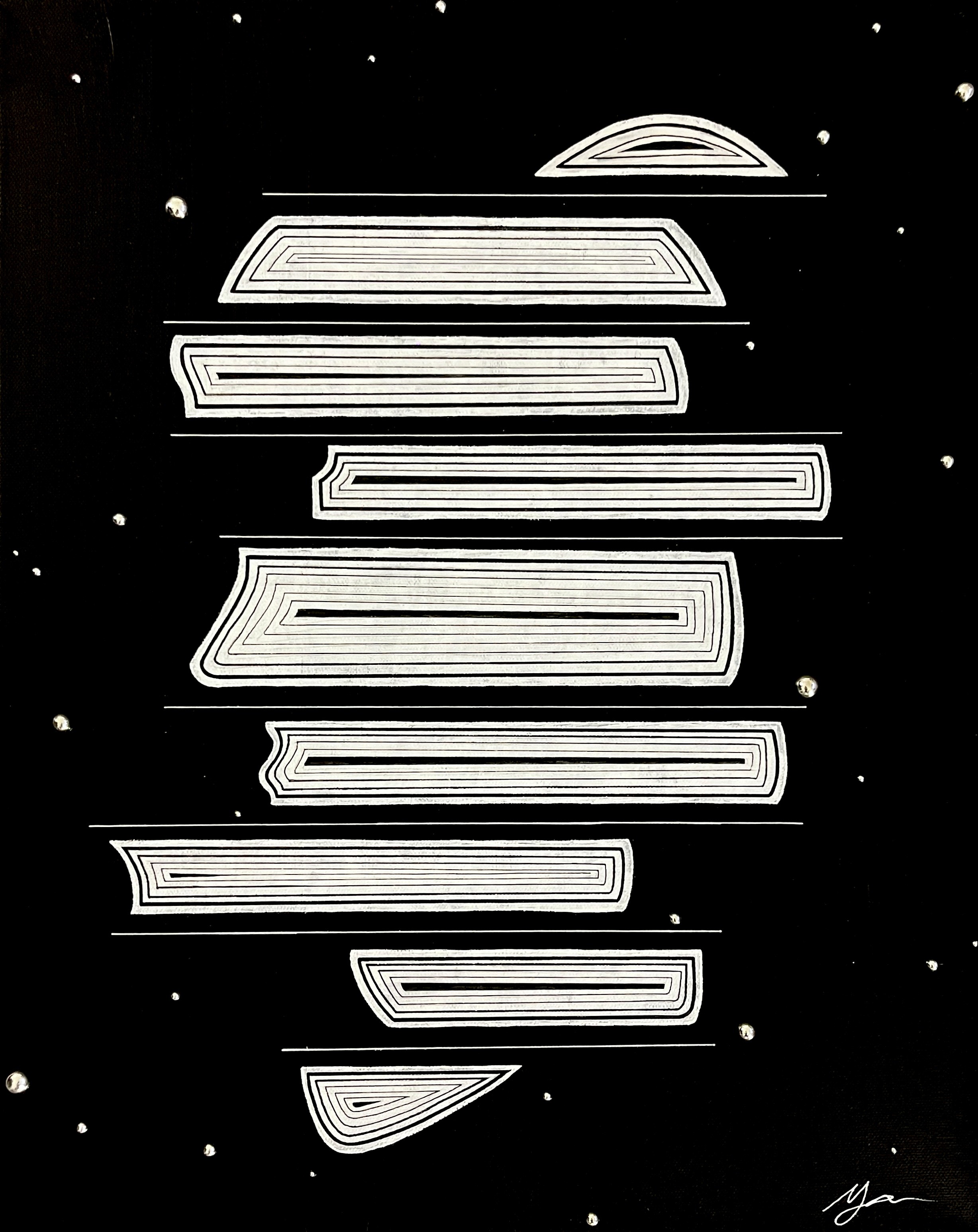16 x 20 acrylic paint, ink, & chrome pearls on canvas